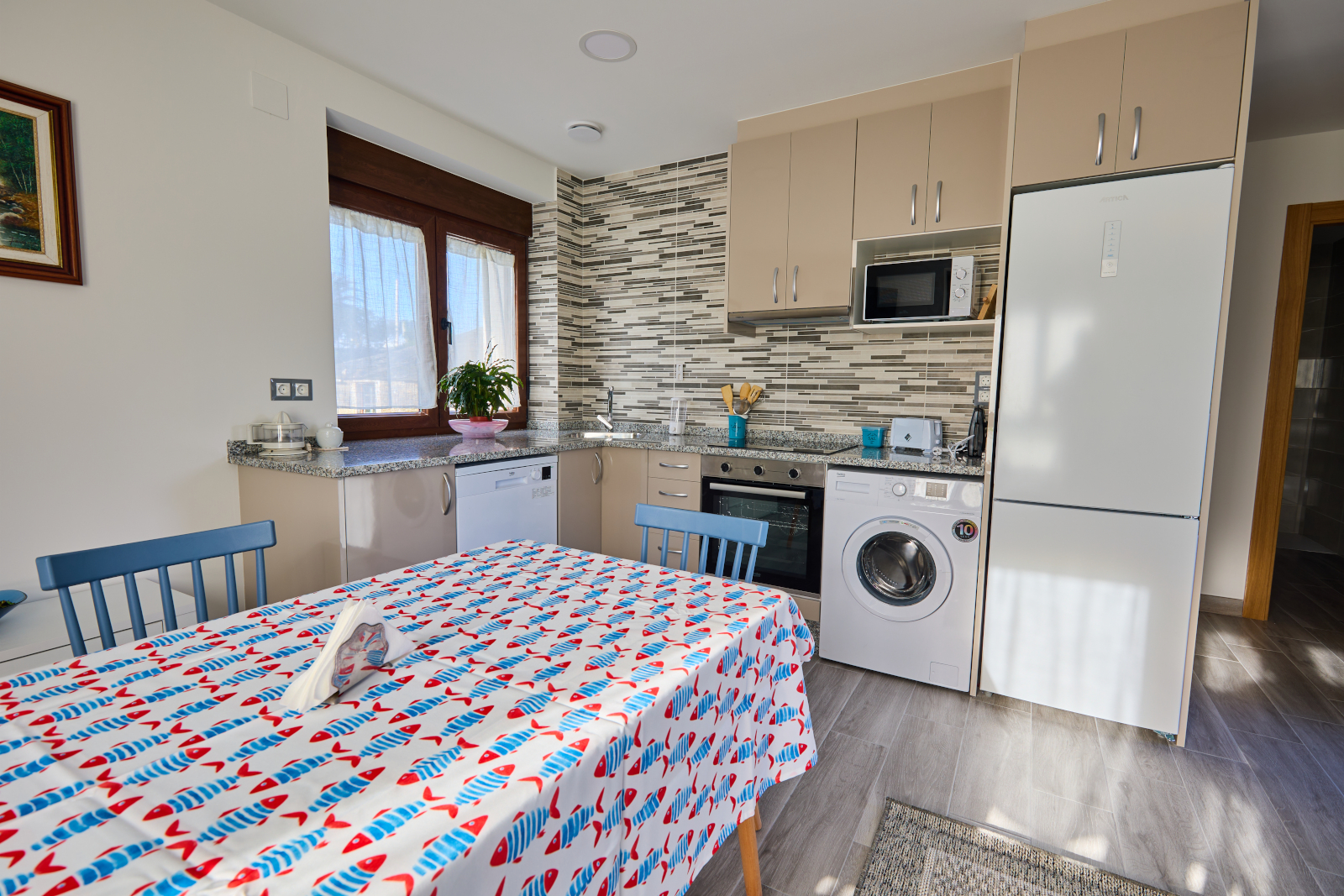 La cocina está totalmente equipada y en la zona común exterior dispone de zona infantil, jardín con parrilla y aparcamiento.