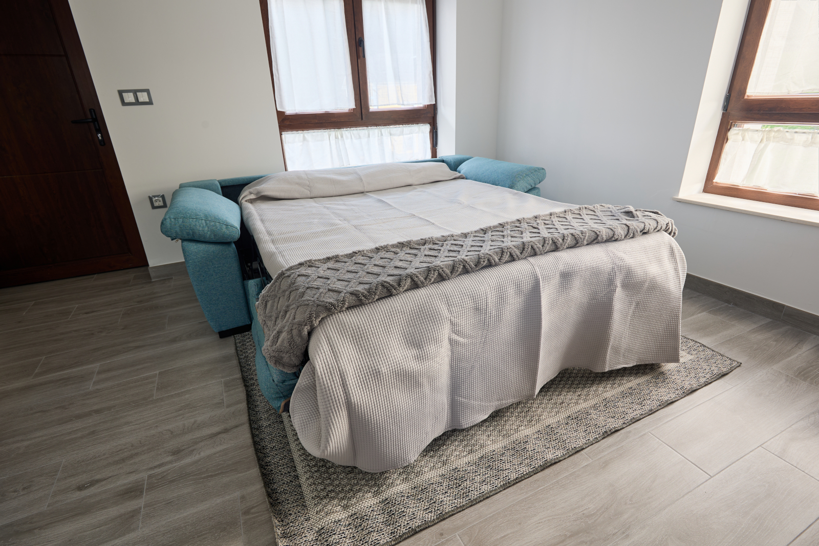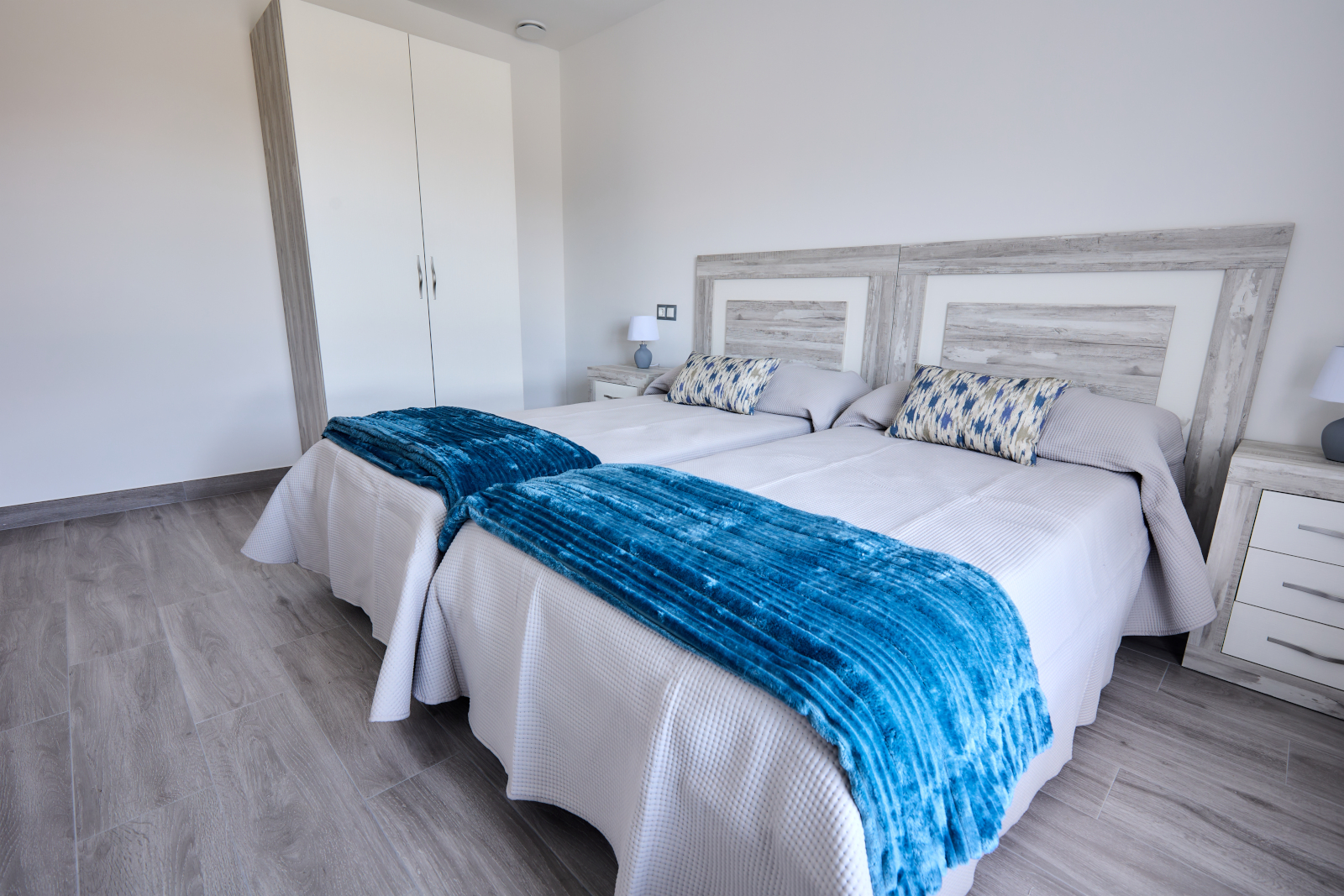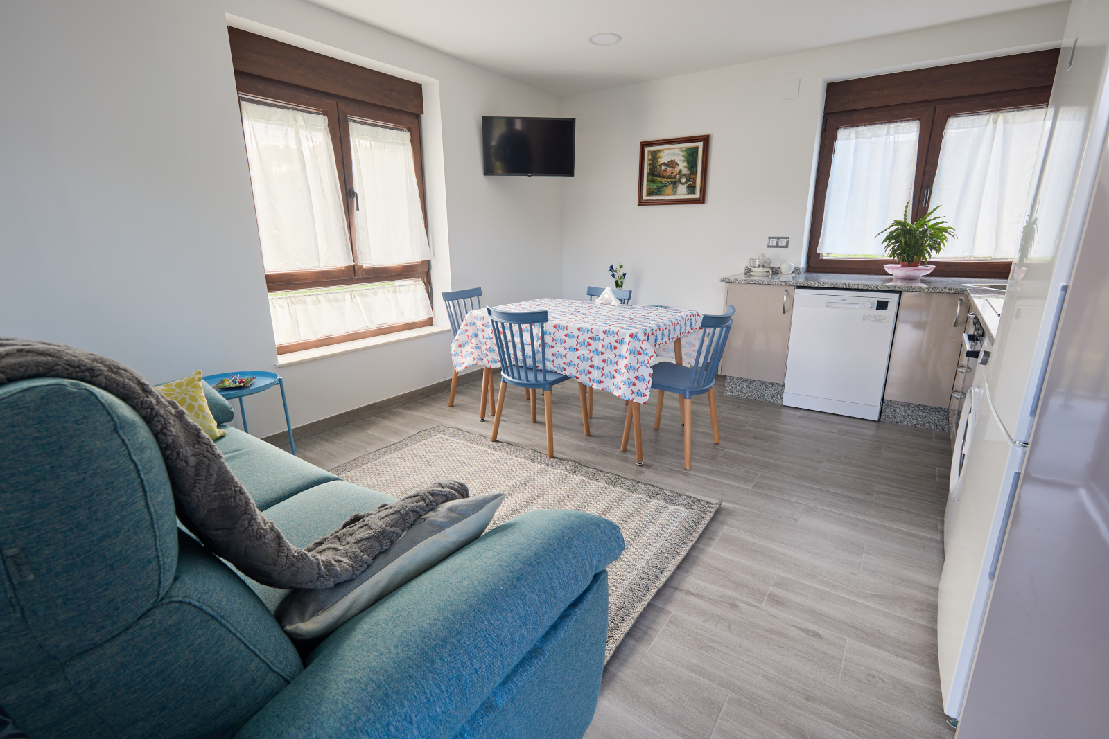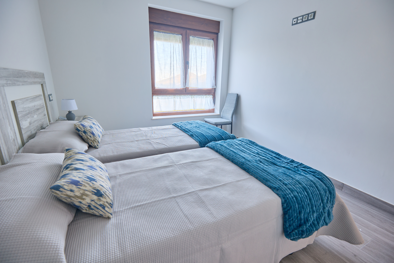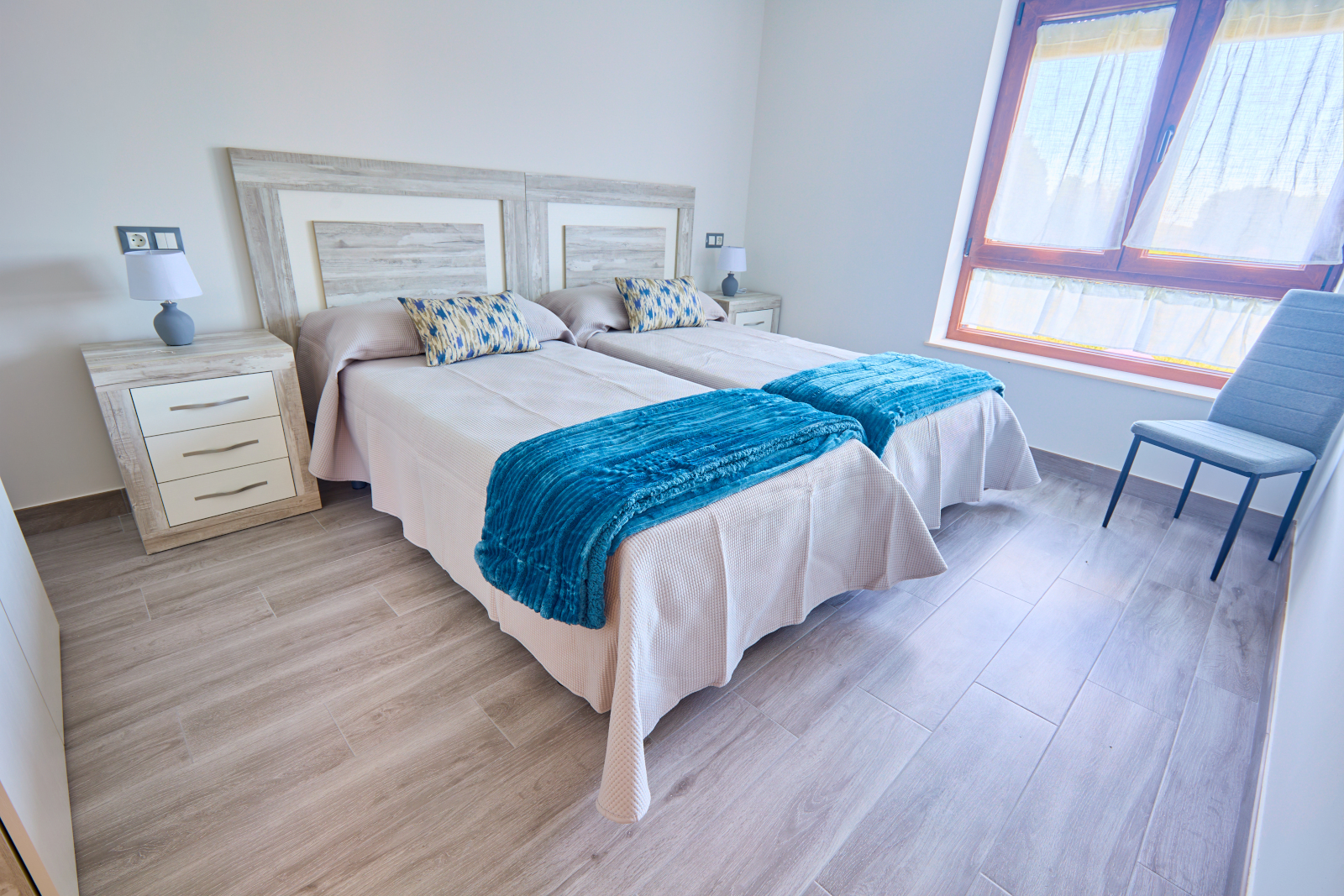 Dispone de una habitación con dos camas de 90 cm, un salón cocina con un sofá-cama de 1,40 x 2,00 cm y un baño completo.